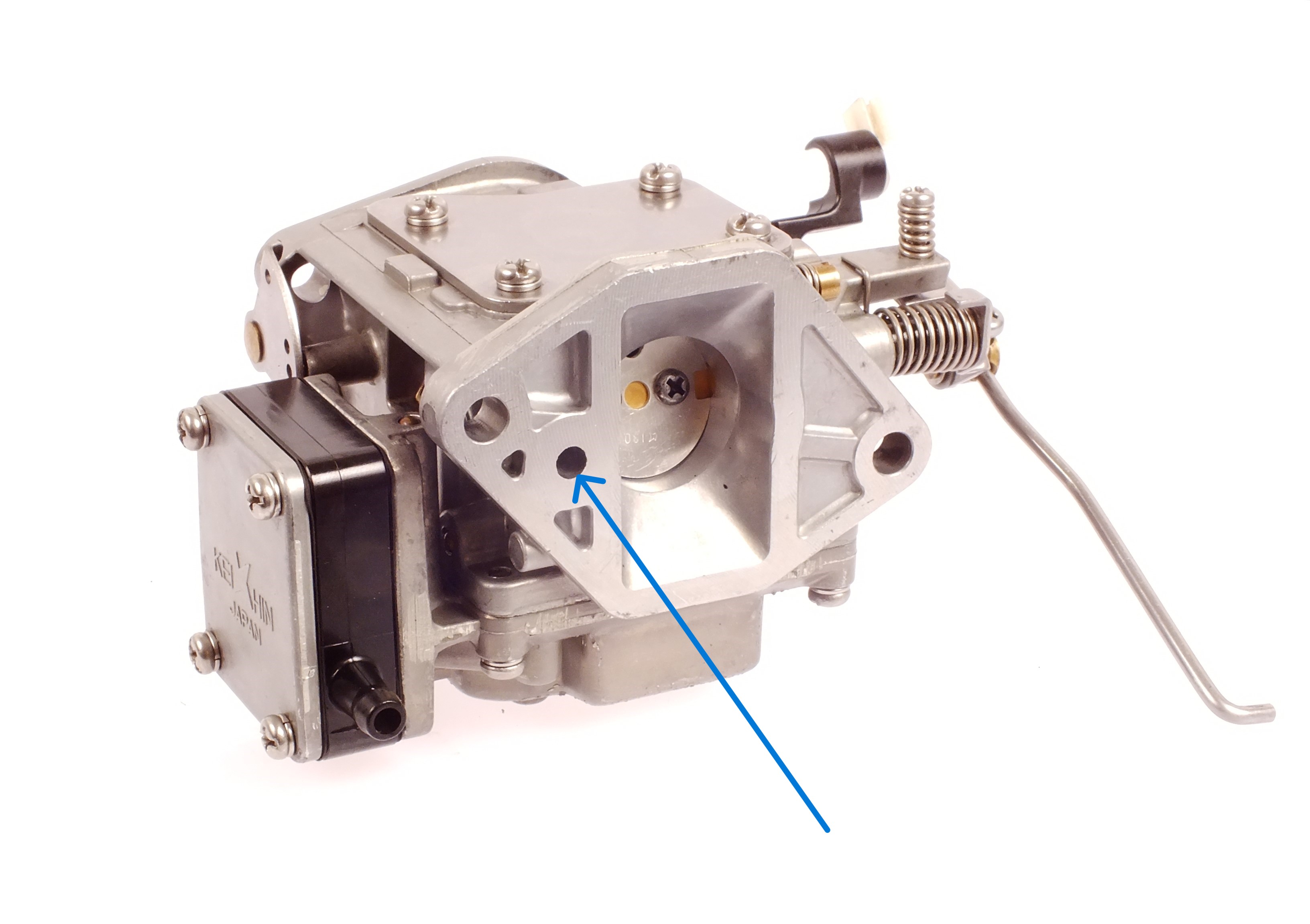 Der blaue Pfeil zeigt die Verbindung zum Kurbelgehäuse.