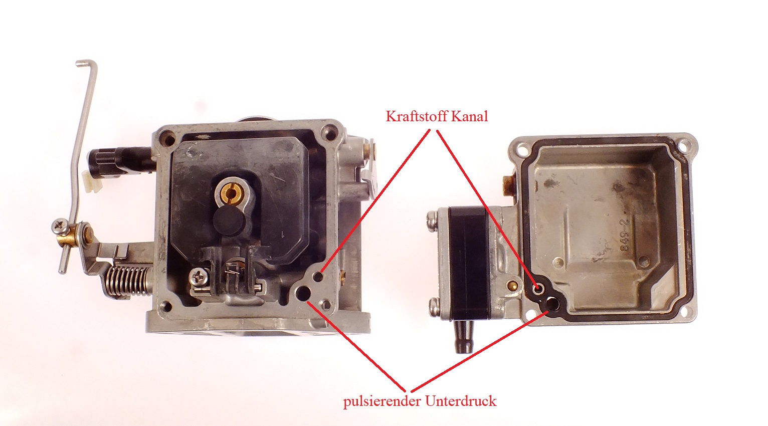 Druck und des geförderten Kraftstoffes nebeneinander am Rand der Schwimmerkammer.