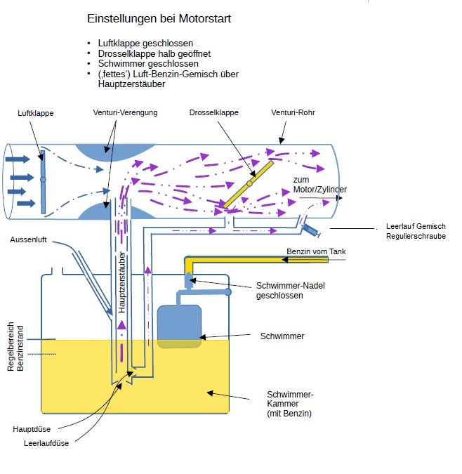 Kaltstart benötigte Kraftstoff wird der Schwimmerkammer entnommen,